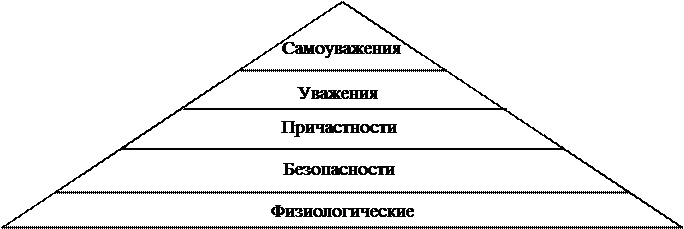 Другим распространенным способом классификации потребностей является теория потребностей Маслоу. Ее схематическая интерпретация известна как «пирамида Маслоу» (рис.1). Суть теории в том, что ни одна потребность более высокого уровня не может быть удовлетворена до тех пор, пока не будут удовлетворены все потребности низшего уровня.
