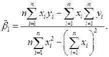 Для определения минимума функции двух переменных рассчитываются частные производные этой функции по каждому из оцениваемых параметров и приравниваются нулю. Полученная система уравнений называется стационарной системой уравнений для функции (2). В результате преобразования стационарной системы уравнений получим систему двух нормальных линейных уравнений: