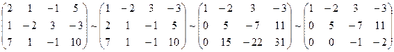 , откуда получаем: x3 = 2; x2 = 5; x1 = 1.