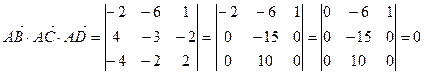 Таким образом, полученные выше векторы компланарны, следовательно точки A, B, C и D лежат в одной плоскости.