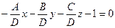 Если в общем уравнении Ах + Ву + Сz + D = 0 поделить обе части на (-D)