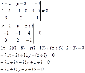 Итого, получаем уравнение плоскости: 11 x - 7 y – 2 z – 21 = 0.