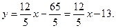 Пример. Дано общее уравнение прямой 12х – 5у – 65 = 0. Требуется написать различные типы уравнений этой прямой.