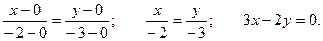 Пример. Составить уравнение прямой, проходящей через точку А(-2, -3) и начало координат.