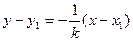 Определение. Прямая, проходящая через точку М1(х1, у1) и перпендикулярная к прямой у = kx + b представляется уравнением: