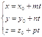 Преобразовав эту систему и приравняв значения параметра t, получаем канонические уравнения прямой в пространстве: