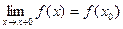 Определение. Функция f(x), определенная в окрестности некоторой точки х0, называется непрерывной в точке х0, если предел функции и ее значение в этой точке равны, т.е.