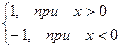 Эта функция также обозначается sign(x) – знак х. В точке х = 0 функция не определена. Т.к. левый и правый пределы функции различны, то точка разрыва – 1 – го рода. Если доопределить функцию в точке х = 0, положив f(0) = 1, то функция будет непрерывна справа, если положить f(0) = -1, то функция будет непрерывной слева, если положить f(x) равное какому- либо числу, отличному от 1 или –1, то функция не будет непрерывна ни слева, ни справа, но во всех случаях тем не менее будет иметь в точке х = 0 разрыв 1 – го рода. В этом примере точка разрыва 1 – го рода не является устранимой.