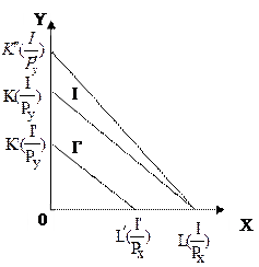 P'Y < PY. В данном варианте точка L не изменит своего положения, ибо (оно обусловливается неизменными I и Рх Левый же конец бюджетной линии сдвинется вверх и займет положение К".