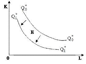 Рис. 8.11. Сдвиг изокванты в результате технического прогресса