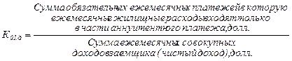 При рассмотрении вопроса о предоставлении ипотечного кредитования может быть использована методика инвестиционного фонда «США-Россия», основанная на расчете следующих коэффициентов.