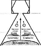 Вторая смысловая линия — это трактовка причин возникновения неврозов как нарушения одного из принципов причинности (активности, саморазвития и иерархичности), а следовательно, подавления глубинных Сил, изображенных на схеме (Рис. 2). Распад душевного мира, по-видимому, начинается в обратной последовательности, в которой мы наносили глубинные Силы на схему «сцена-подвал».
