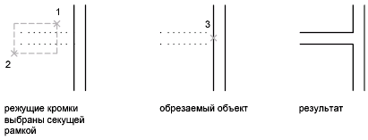 Имеется возможность обрезать объекты до их ближайших пересечений с другими объектами. Для этого при выборе исходных объектов нужно удерживать нажатой клавишу SHIFT.