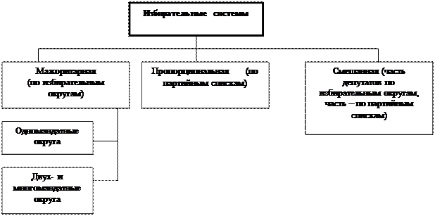 При проведении муниципальных выборов используются различные избирательные системы (рисунок). Основные из них — выборы по избирательным округам («мажоритарная» система) и пропорциональная система.