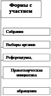 Специфическая форма участия граждан в самоуправлении — мирные массовые акции: собрания, митинги, демонстрации, шествия, пикетирование. Их цель — привлечение внимания к какой-либо проблеме, оказание влияния (давления) на органы местного самоуправления для принятия какого-то решения. Проведение таких акций, как правило, свидетельствует о проблемах.