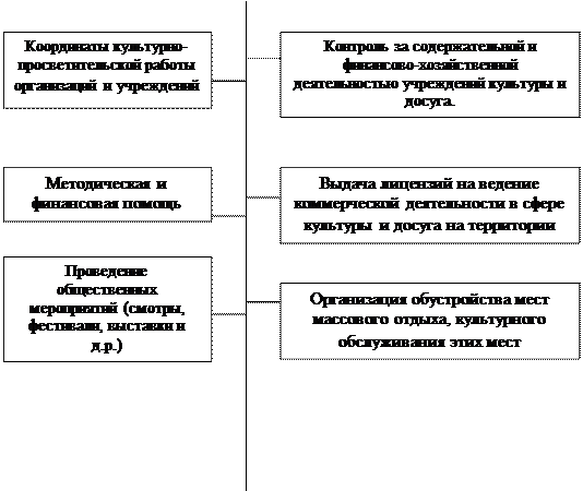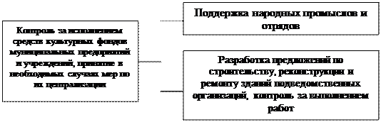 Для осуществления функций регулирования и поддержки культуры и искусства и организации сферы досуга в администрации муниципального образования может создаваться структурное подразделение по вопросам культуры с правами юридического лица. При этом подразделении могут формироваться совещательные органы: общественный совет по культуре, художественный совет, советы директоров, объединенные методические советы учреждений культуры, советы по кино, другие совещательные органы.
