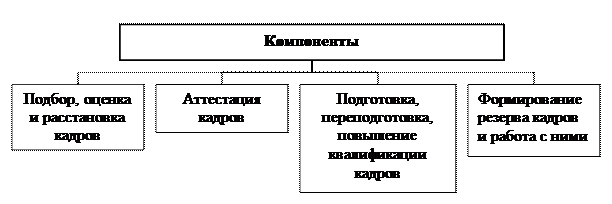 Ключевое значение в процессах кадрового обеспечения и развития кадрового потенциала муниципальной службы с учетом перечисленных профессиональных требований и этических норм имеет деятельность, связанная с формированием и эффективным использованием кадров муниципального управления. Ее главные компоненты представлены на рис.