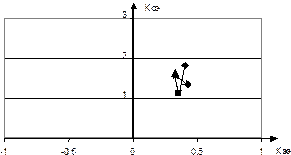 По показателям социальной и экономической эффективности можно построить траектории, наглядно отображающие процесс социально-экономического развития территорий (рис.2)