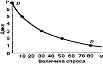 Кривая индивидуального спроса представлена в виде нисходящей кривой DD, поскольку между ценой и величиной спроса существует обратная зависимость.