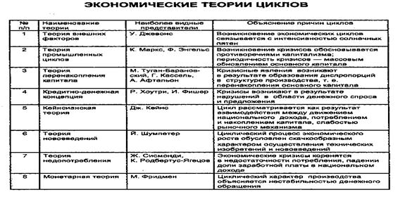 2. Теории циклов. Теории экономического цикла – это комплекс взглядов, идей, направленных на объяснение периодических колебаний общей экономической активности.