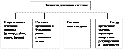 В мире существуют различные системы денежного обращения, которые сложились исторически и закреплены законодательно каждым государством. Важнейшие компоненты денежной системы представлены на рисунке.