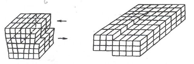 Дислокации, т.е. смещения плоскостей решетки, бывают линейные (краевые) и винтовые (спиральные). Первые - результат неполного (не по всей глубине) сдвига решетки: появляется незаконченная полуплоскость атомов (рисунок 1.5, а). Вторые - результат полного (по всей глубине) сдвига некоторого участка решетки (рисунок 1.5, б).