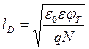 Протяженность подвижных зарядов в обогащенном слое называют длиной Дебая или дебаевской длиной, а протяженность неподвижных ионных зарядов - глубиной обедненного слоя. LDi =