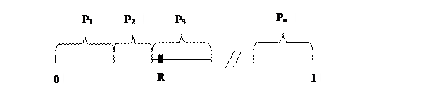 и будем считать, что произошло то из событий, на чей участок попало число R (на приведенном ниже рисунке произошло A3)
