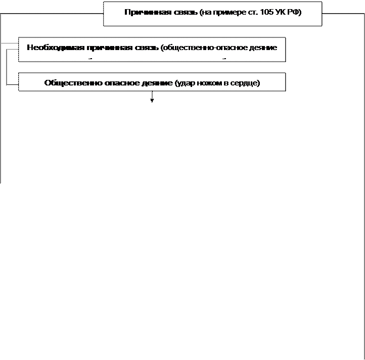 4. Что такое причинная связь в уголовном праве? Непременным условием уголовной ответственности в материальных составах преступлений является установление причинной связи между преступным деянием и наступившими вредными последствиями.Для правильного решения вопроса о причинной связи в каждом конкретном случае должен быть установлен ряд обстоятельств, наличие которых позволяет признать, что общественно опасное деяние явилось причиной наступления вредных последствий. Для установления уголовно-правовой причинной связи необходимы следующие критерии:1) из комплекса явлений, предшествующих и сопутствующих преступлению следует выделить факторы, связанные с наступлением вредных последствий;2) для признания причинной связи между противоправным деянием и вредными последствиями необходимо, чтобы это деяние предшествовало по времени наступлению этих последствий;3) деяние лица само по себе должно быть необходимым условием наступления вредных последствий;4) причинная связь между деянием и наступившими вредными последствиями должна быть прямой, не усложненной привходящими, не зависимыми от воли и сознания лица, силами. Ответственность лица при присоединении других независимых сил наступает, если он мог и должен был предвидеть их наличие, иначе говоря, причинная связь должна носить виновный характер (см: схема 12).