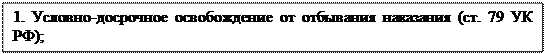 | Условно-досрочное освобождение от отбывания наказания применяется только после фактического отбывания наказания (ст. 79 УК РФ): |