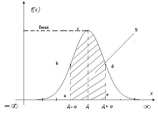 3) f(x) имеет 2 точки перегиба (точки b и d): при х = А - σ и при х = А+σ (проверить самостоятельно), то есть в этих точках