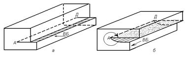 | Рисунок 1.17. Сравнение краевой (а) и винтовой (б) дислокаций |