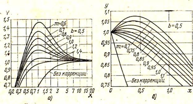 переходных характеристик, изображенных на рисунок 1.81,б. Вначале надо выбрать кривую, при которой получается подъем 3% (yмакс=1,03); из рисунка видим, что она соответствует m=0,8. По этой кривой находим х=0,82, соответствующее уменьшению амплитуды на 3% (yт=0,97), и определяем необходимые значения С и Сф: