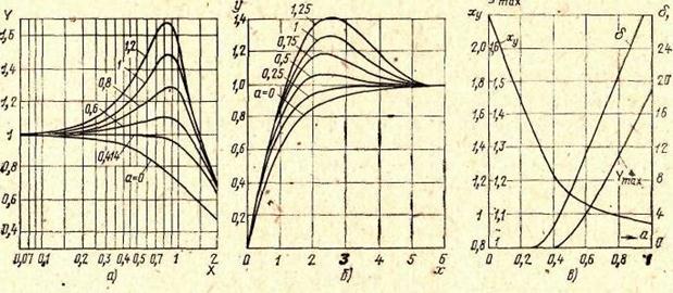 2 По графикам рисунок 1.82, а найдем, что характеристика, имеющая Yмакс = 1,1, соответствует а = 0,6; по этой характеристике находим, что Yмакс = 1,1 имеет место при Х=0,8, тогда необходимое значение