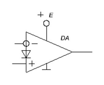 Обычно ОУ широкого применения представляют собой компромисс характеристик по постоянному и переменному току. Улучшение одних характеристик, как правило, ухудшает другие. Рассмотрим простейший дифференциальный каскад (рисунок 1.66) на согласованной дифпаре VT1 и VT2. Как известно, режим работы дифкаскада зависит от тока I0. В частности, показано, что таким образом, если управлять током I0, то можно в достаточно широких пределах перестраивать характеристики ОУ. Подобная идея и была реализована в первом отечественном ПОУ 140УД12. Для этого в ОУ выводится наружу точка А, а I0задается различными способами, в простейшем случае с помощью диода VD и резистора R1 (рисунок 1.89). Подбирая резистор R1перестраиваем ток I01 и характеристики ОУ. Диод VD используется в качестве защиты от переполюсовки питания. Более качественные источники управляющего тока I0 можно
