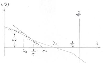 Здесь изображен случай, когда ЛАХ пересекает прямую, проведенную через точку l = 2/Т, с наклоном – 40дб/дек.