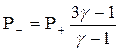 где: Р- и Р+ - давления газа соответственно в отраженной и прямой волне, так для двухатомного газа, т.е. для g = 7/5, давление в сильной отраженной волне в 8 раз превосходит давление в падающей волне.