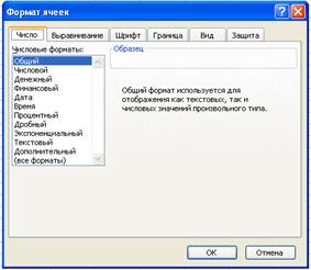 ü Формат "Общий". Отображает как текстовые, так и числовые значения в том виде, в каком они были введены в ячейку. Этот формат имеет ряд хитростей: