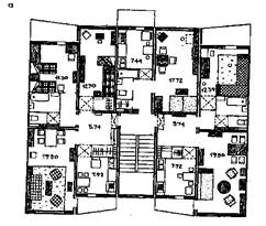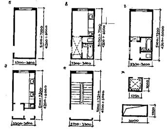 по типологическим признакам - блоки жилых комнат, санитарно-кухонные, смешанные (кухня-жилая комната, санитарный узел и часть коридора), блок лестницы, вспомогательные (рис. 5.41- 5.42)