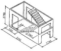 по функциональному назначению - блок санитарно-технических кабин, блок-комнаты, блок-квартиры, блок лифтовых шахт, машинных отделений лифтов, лестниц, фундаментов, крыши, вентиляционных камер и лоджий (рис. 5.42). Цельнофермонанная блок-лестница (рис. 5.42, а) представяет собой чегырехстенную железобетонную объемную конструкцию, с которой монолитно соединены две складки лестничных маршей и две лестничные площадкит. Эта конструкция обладает повышенной простанственной жесткостью и миеет минимальное количесво закладных деталей, необходимых лишь для поэтажного соединения лестничных блоков. Технико-экономические показатели конструкции цельноформованной блок-лестницы выгодно отличаются от показателей сборной лестницы: расход железобетона меньше на 24 %, арматурной стали на 26 %, а трудоемкость изготовления - на 22 %. В пространствен-ном лестничном блоке (рис.5.42, б) монолитно соединены между собой два лестничных марша, две лестничные площадки и опорный стеновой элемент, расположенный между маршами и площадками. Для облегчения массы конструкции стеновой элемент может выполняться с вырезами различной конфигурации. При применении пространственных лестничных блоков вместо сборных лестниц достигается определенный экономический эффект: расход железобетона уменьшается на 3,4%, стали – на 3,6%, трудоемкость изготовления - на 31,4%. Объемный лестнично-лифтовой блок (рис. 5.42, в ) состоит из железобетонной лифтовой шахты и монолитно-связанных с ней двух лестничных маршей и мусоропровода. Основные технико-экономические показатели этого лестнично-лифтового блока выгодно отличаются от показателей сборного варианта: количество монтажных элементов меньше в 2 раза, расход железобетона ниже на 14%, а стали – на 4%. Сборная блок-лестница представлена на рис.5.42, г, состоит из четырехстенного элемента и присоединенных к нему на сварке опорных балок, лестничных площадок и маршей;