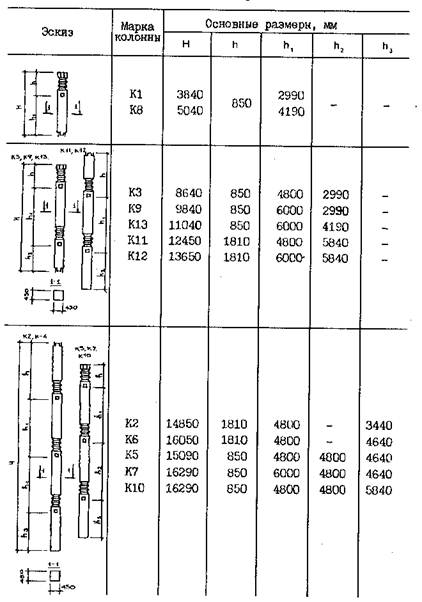 Колонны предусматриваются бесстыковыми и стыковыми. Бесстыковые колонны имеют предельную высоту 13,75 м. Их применяют в зданиях малой и средней этажности.