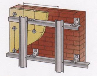 Подоблицовочная конструкция вентилируемого фасада состоит из кронштейнов, которые крепятся непосредственно на стену, и несущих профилей, устанавливаемых на кронштейны. На несущих профилях, образующих каркасную систему, крепежными элементами монтируются плиты или листы облицовки. Теплоизоляционный слой фиксируется на наружной поверхности стены дюбелями и профилями.
