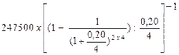 Приклад. Комерційний банк здав в оренду підприємству устаткування вартістю 247500 грн.. Термін угоди складає 2 роки, починаючи з 03 квітня. Орендна ставка відсотка становить 20% річних. Орендні платежі банк одержує один раз на квартал. Після завершення строку оренди право власності на устаткування переходить орендарю.