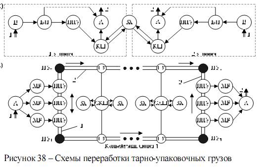 4. Комбинированный способ (прямой вариант + стеллажное хранение, рис. 38, г)