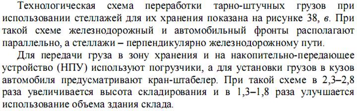 3. Стеллажное хранение с перпендикулярным расположение стеллажей (рис. 38, в)