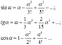 При малых значениях угла a допустимо ограничиться для расчета функции только первыми членами разложения и принять: sin a = a; tg a = a; cos a = 1.