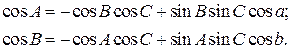 sin b cos A = cos a sin с — sin a cos с cos В.