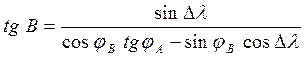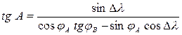 Для нахождения азимута воспользуемся теоремой котангенсов: