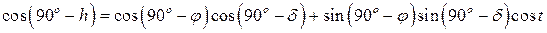 Как видно на рис. 2.5, в сферическом треугольнике РАВ даны две стороны и угол между ними. Воспользуемся теоремами косинуса стороны и четырех рядом лежащих элементов.