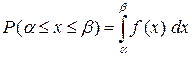 Вероятность того, что случайная величина заключена в пределах от a до β, равна площади под кривой в этом интервале и может быть найдена путем интегрирования: